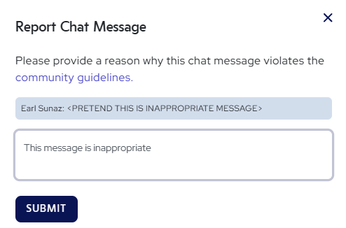 If someone sends an offensive or inappropriate message in chat, you can report that exact message.