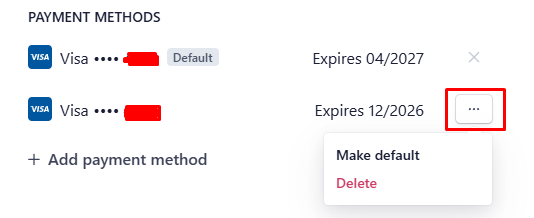 You are now free to delete the card that you no longer want to use for Flow Club. Just click the three dots next to it, and click "Delete."